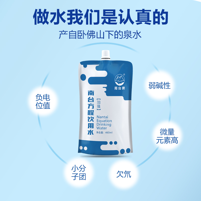 南臺(tái)方程水弱堿性小分子團(tuán)飲用水460ml-12袋箱裝高能態(tài)